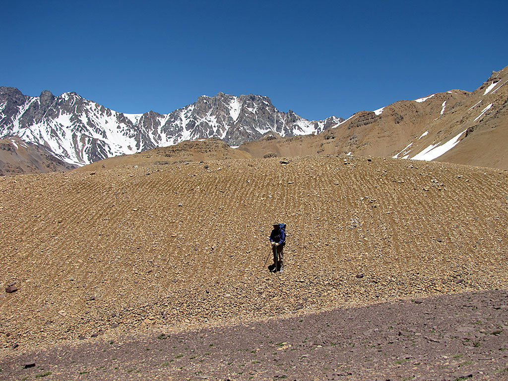 Solomos caminar en el ambiente periglacial sin que lo notemos, la mayor parte de los ascensos en altura transcurren en este ambiente, allí trazamos nuestros trayectos, instalamos nuestros campamentos.