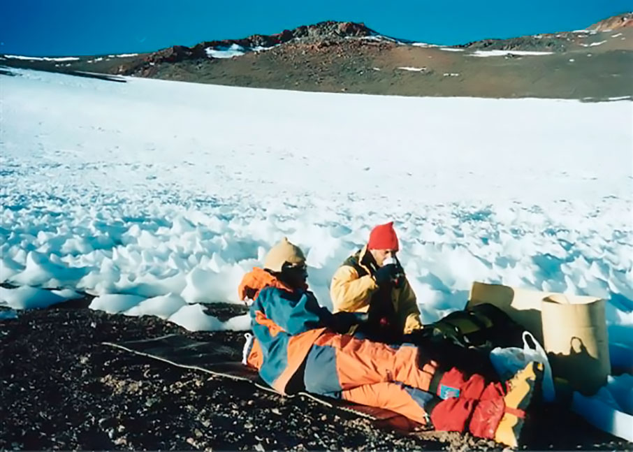 5. Norte: (1986) Johan Reinhard y Louis Glausser en el marco de la expedición Cráter.