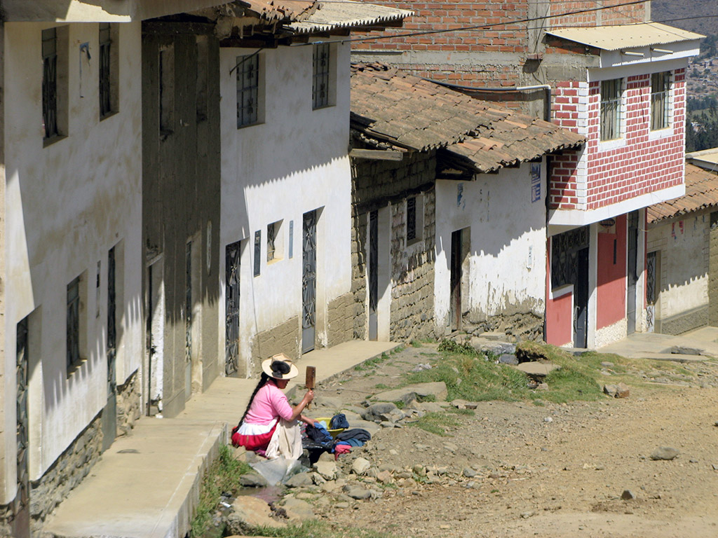 Todo transcurrió en subidas y bajadas entre casitas hechas de adobe ya sea en forma de ladrillos o armando una especie de encofrado con tablas, tirando el adobe dentro de esa especie de cajón de madera que forman y apisonando con un mortero o algo parecido. Buena parte del trayecto, pasaba por callecitas o pasillos mínimos entre viviendas donde vimos mujeres hilando, lavando ropa, llevando animales de un lado al otro hasta una pareja de gringos en sus bicicletas de montaña con el padre llevando un trailer en su bici y dentro, sentado muy cómodo, un bebé.