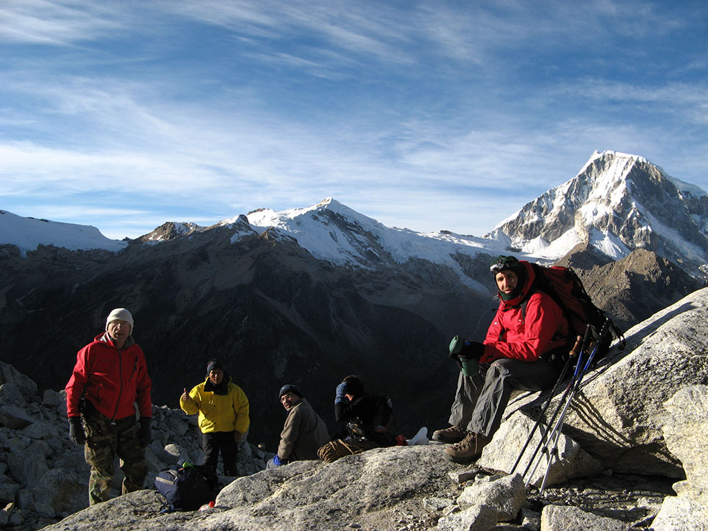 Nos sacamos las fotos e hicimos las payasadas de siempre pero, por sobre todas las cosas, disfrutamos desde los 5760 msnm del Pisco, montaña inigualables, viendo el Chacraraju, el Arteson y el mismísimo Alpamayo. Hacia el otro lado, el Huascarán, el Chopicalqui y tres de las cuatro cumbres del Huandoy. Panorama como este hacía y hace única a la Cordillera Blanca Peruana.
