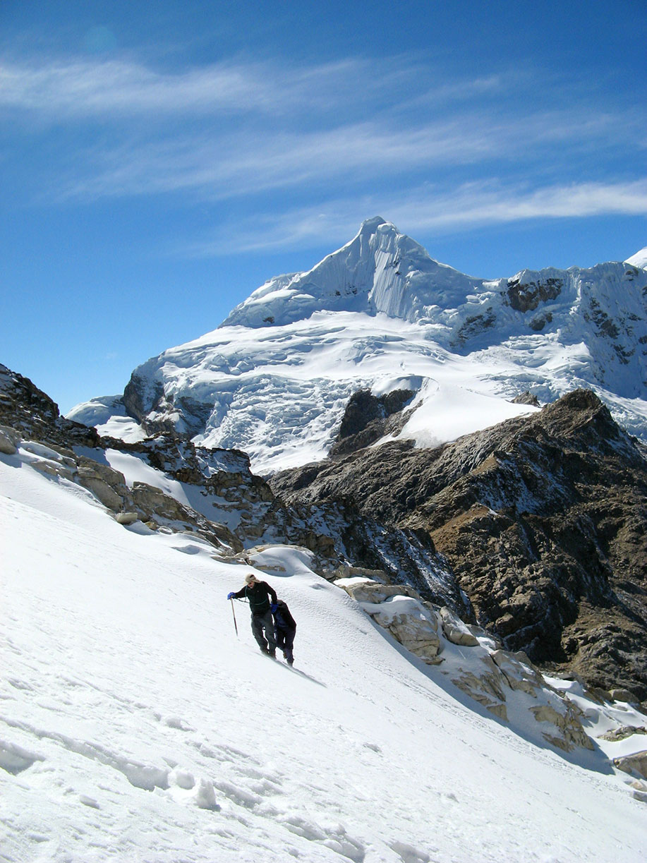 Al llegar al hielo una vieja discusión volvió a plantearse. Parecía algo rutinario en los guías peruanos, al menos con los que tuvimos contacto. El hecho de que el grupo avanzar encordado o no, cada vez que se pisa hielo o nieve, con estacas o tornillos como fijaciones o no, se constituyó en tema de debate. Finalmente, terminamos viendo que la única pendiente "discutible" era la pala de nieve del principio y luego todo el trayecto tenía una inclinación que no revestía peligro.