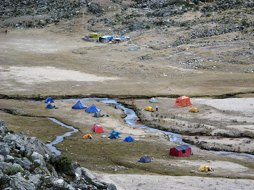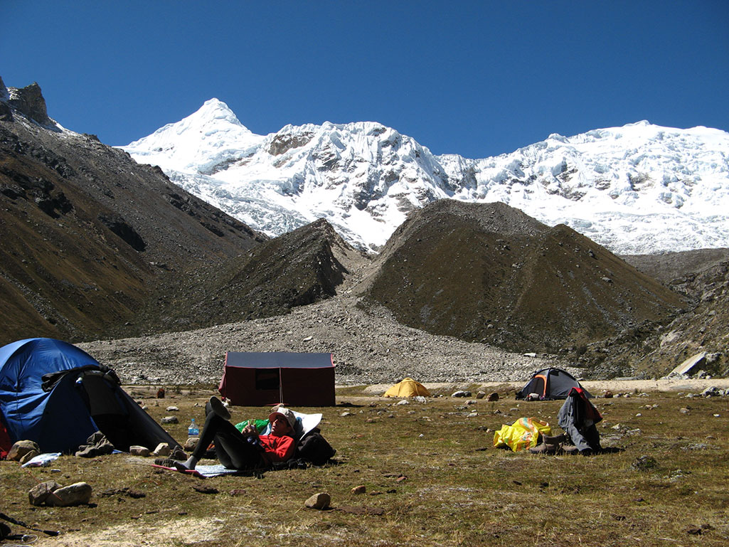 Durante nuestro resuello, surgió la idea de estar esa misma noche en Huaraz. Eso requería que saliéramos a buen ritmo hasta los 4600 msnm del Campo Base y tuviéramos que hacer una serie larga de más cambios. Lo charlamos un rato y nos pareció mejor quedarnos en el CB. Cerramos el trato. Una noche más a 4600 msnm que para nuestra aclimatación actual era nada.