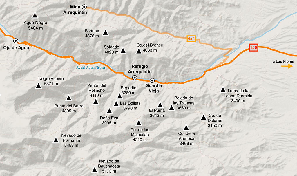 Repasando el día, pensamos que una estancia en Arrequintin, permite en un eventual primer día hacer el recorrido que unas horas antes habíamos completado por el filo Reparito, de las Bolitas, Doña Eva, superando casi 1000 metros de desnivel por un cómodo recorrido. Posteriormente, en un segundo día se puede ascender hacia el norte, el Co. El Bronce (4.033 m) el cual habíamos ascendido en 2014 con el Turco, para luego unir a través del filo norte con El Soldado (4.023 m) e incluso el Co. De la Fortuna (4.380 m) en lo que se convierte en un día más exigente, pero que a su vez completa una buena etapa de aclimatación para alcanzar objetivos de mayor altitud.