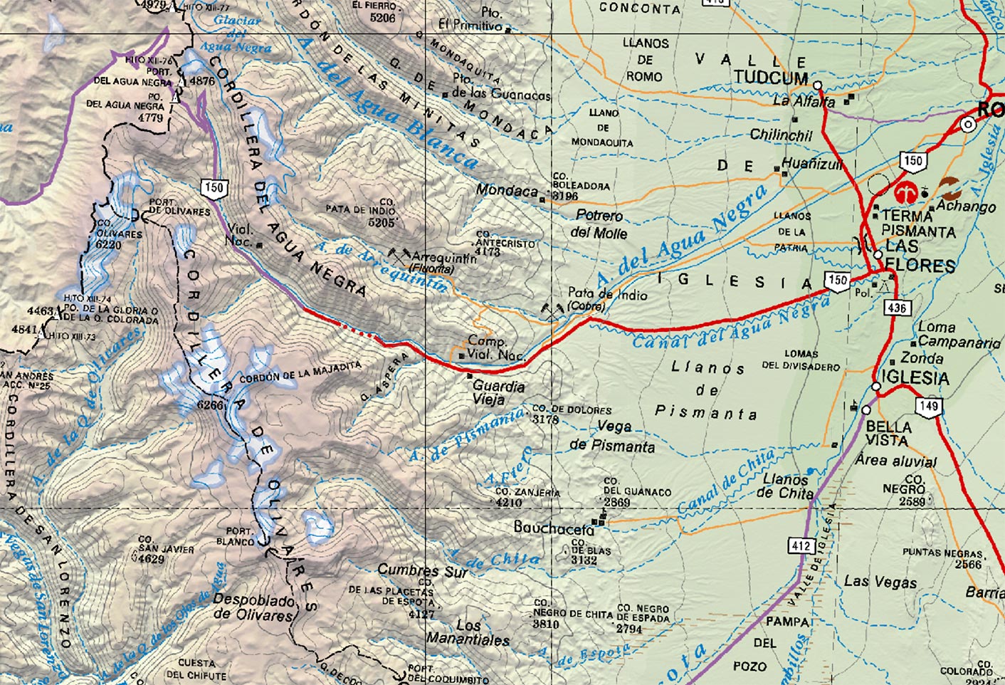 Nuestra idea era ir a la Cordillera de Agua Negra y el Cordón de Olivares, pero el cierre de las fronteras terrestres, impedían transitar por la ruta 150 que lleva al paso de Agua Negra, en el límite con Chile.