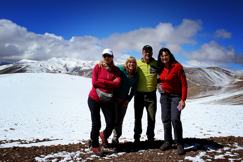 El Hotel Cortaderas, 3.300 m.s.n.m., es un lugar increíble en medio de montañas, donde el primer día disfrutamos de un merecido descanso. Al segundo día partimos a subir el CERRO FALSO MOROCHO, 4.529 m.s.n.m., dicen que es la montaña base de todos los ascensos en la zona. Luego de recorrer la ruta por paisajes alucinantes comenzamos a subir con un día soleado, hicimos cumbre y sentimos mucha emoción, lágrimas, nos abrazamos los cuatro pensando en todas las dificultades que debimos salvar para llegar a ese momento tan deseado. En el regreso nevisca hasta la base y lluvia al llegar a nuestro alojamiento. La presencia de los volcanes Incahuasi y el San Francisco es imponente en el paisaje, nos desafiaron a volver….