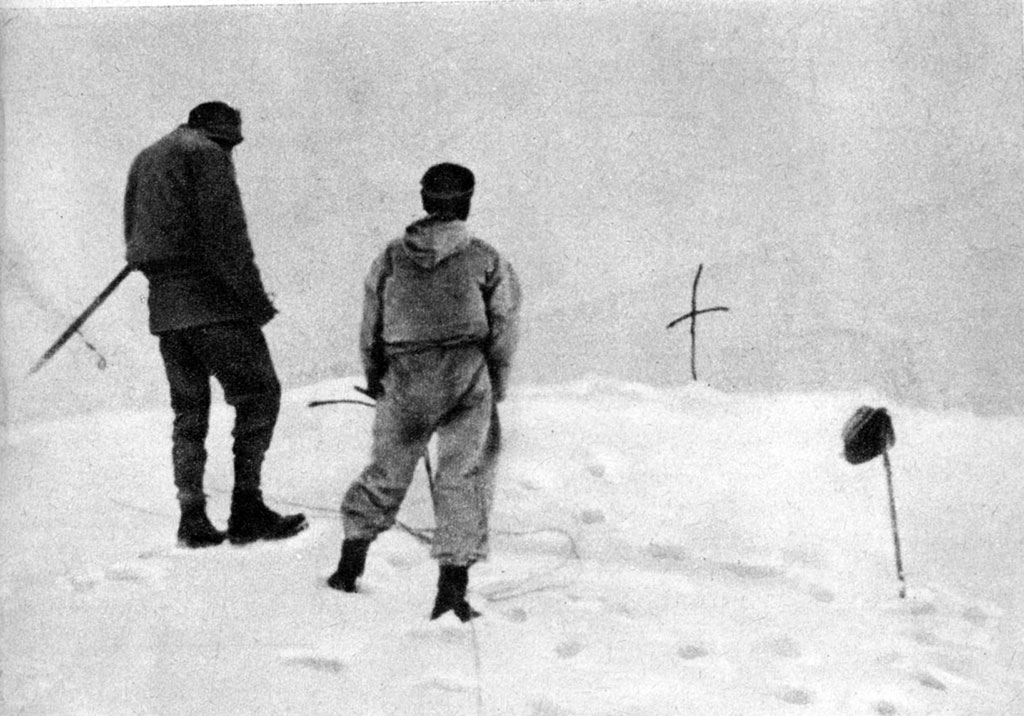 A tramos, emergen del helado piso negras rompientes de peñascos sumergidos en el desnivelado mar del ventisquero. Setecientos metros de altitud separan la codiciada meta del empeño inquebrantable de los cuatro ascensionistas restantes que a mediodía se lanzan por la trayectoria accidentada, desigual. En cada cuenca de hielo, la visión del vértice final desaparece. El avance era lento, los pies se hundían al afirmar los granpones, el frío (-15° C), persistía. Ocho horas requirieron la fase final del escalamiento por esta nueva ruta: a las 18,00 horas y luego de 8 horas de marcha las dos cordadas que habían quedado para el asalto final arribaron a la cumbre, Daszyinski y Osiecki, la primera y Narkiewicz (jefe de expedición) y Ostrowski, son los que lograron coronarla.
