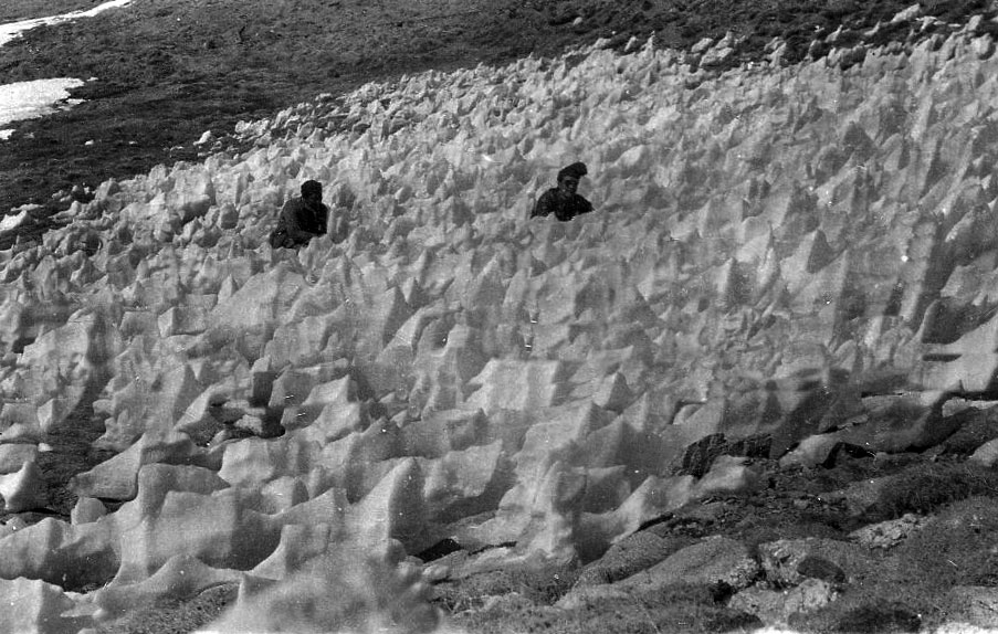 A las 09,00 horas, recién tuvimos sol y al llegar en esos momentos a una hollada de nieve y hielo permanente de dos kilómetros más o menos de diámetro nos permitimos un descanso de una hora.