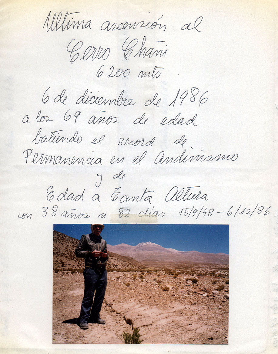 En enero de 1952, realizó la ascensión al cerro Incahuasi, coronando su cima y enarbolando la enseña nacional. Del mismo modo ha coronado el cerro Socompa y el Lacay.