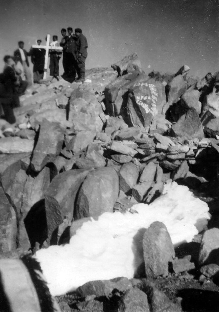 Encontramos tirada la cruz, que había sido llevada por el Padre franciscano Oliverio Pelicelli, en la primera ascensión, junto al Teniente Di Pasquo, en el año 1950.