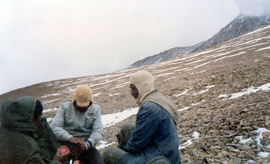 Hicimos un reconocimiento que nos serviría de entrenamiento y sacamos algunas fotografías del campamento, de los penitentes, del río congelado y a medida que íbamos ascendiendo el dolor de cabeza se nos iba como por arte de magia y así llegamos a los 6.000 metros aproximadamente. Regresamos entonces satisfechos del reconocimiento y a las 14,00 horas, estábamos en el campamento.