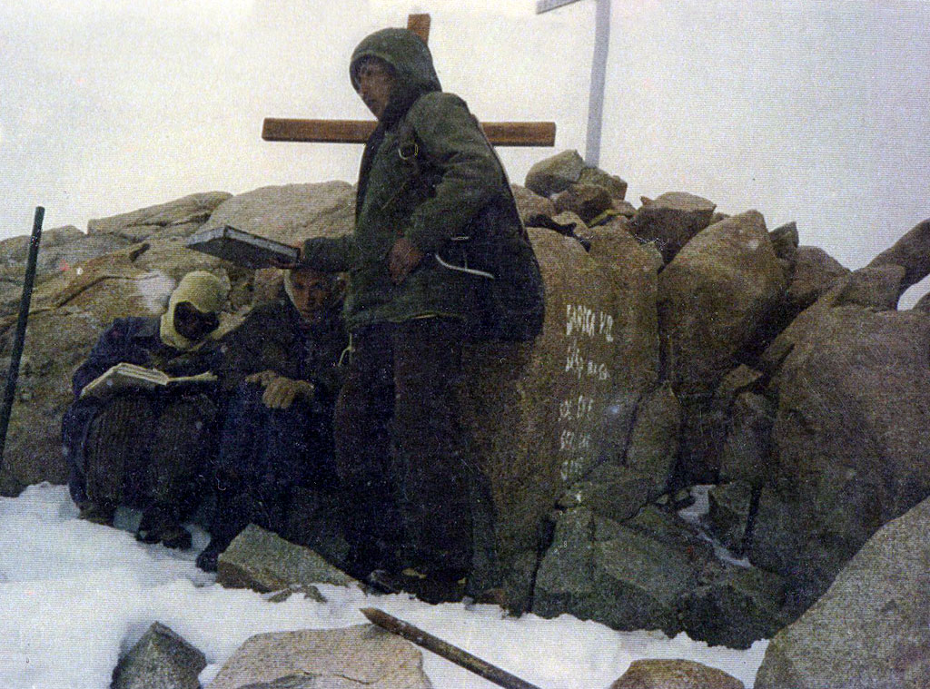 Desafiando el frío de 9 grados bajo cero, que aumentaba notoriamente, seguimos la marcha ampliando los descansos y disminuyendo el número de pasos visiblemente en la marcha, haciéndose muy difícil nuestra respiración. Por fortuna el viento fuerte que prevalece en el cerro, se presentó suave. Este ritmo de ascenso se mantuvo hasta las 06,00 horas, en el que el joven Gómez, expresó que se sentía algo así como con un hormigueo en el pie izquierdo, seguido de una absoluta insensibilidad. La temperatura en esos momentos pasaba los 11 grados bajo cero y el enfriamiento había hecho presa a nuestro compañero. No había tiempo que perder y olvidándonos del cansancio, procedimos a despojarlo de los botines y medias, sometiéndolo luego a un intenso frotamiento con nieve y querosene; al cabo de un tiempo prudencial y para asegurarnos de este método, empapamos un pañuelo con el alcohol y lo quemamos calentándole los pies, que reaccionaron luego de no pocos esfuerzos. Esta operación duró 40 minutos al cabo de los cuales reiniciamos nuevamente la marcha.
