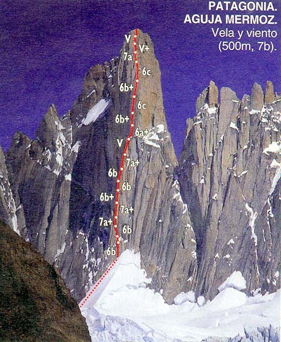 Luego, un paso de escalada artificial extremadamente difícil. Tardaron cinco horas para franquear 25 metros de pared. Cincuenta metros más arriba, las rocas están cubiertas de hielo y las condiciones se volvieron totalmente invernales. A las 22,30 horas, armaron un muy precario vivac, tallando el hielo durante dos horas, petrificados por el frío. Al día siguiente, les quedaban 400 metros muy expuestos con tres pasos de grado V Superior y tres de A3. Guido Magnone, sacó un largo de libre extremo, según él: ¡Alucinante!