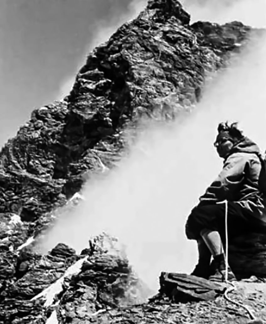 Pero al día siguiente, mejora el tiempo. A las 07,15 horas, volvieron a subir, alivianándose lo máximo posible: parkas de plumas, un litro de agua, un queque y 150 gramos de alimentos concentrados, una sola cuerda de 60 metros, un solo par de grampones, un martillo para cada uno, algunas cuñas de madera y 60 pitones (hubieran necesitados más de 100), unas cintas y mosquetones, era todo, ni siquiera llevaban cámaras fotográficas. En cuatro horas, volvieron a escalar equipados, los 120 metros.