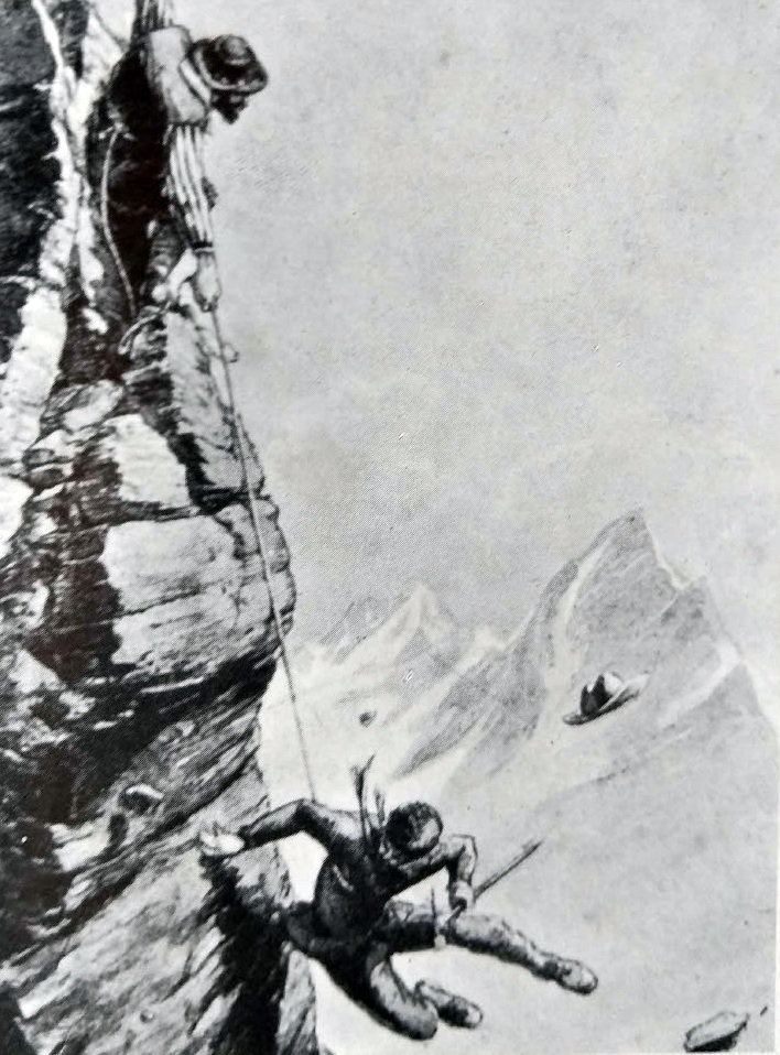 Una hora y media después, llegó Zürbriggen. Había ganado la cumbre y plantado en ella su hacha para hielo. Estaba atontado de fatiga y parecía, tal era la debilidad y cansancio, no dar importancia a su triunfo.