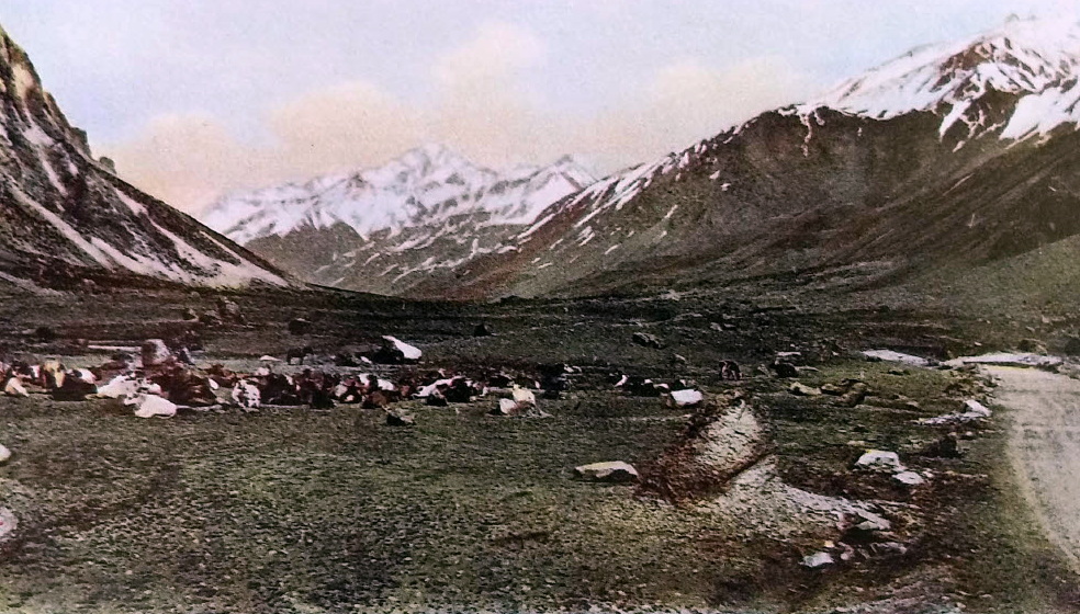 Desayuné abundantemente. No hacía frío; a las 07,00 horas, salimos Zürbriggen, Pollinger, Lanti y yo, en dirección al peñón que señalaba el límite alcanzado por Güssfeldt, que en dos horas y media alcanzamos, pese al camino empinado y con cantos rodados. Más allá se veía un piso firme y de menor pendiente.
