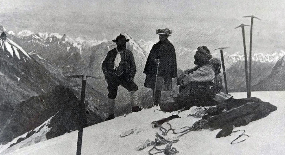 Al fin, tres días después, fueron los primeros en alcanzar el Nadeljoch, de 4.213 metros SNM., por un camino o ruta que luego hizo exclamar a Kurz: Es propiamente divertido constatar como Eckenstein, el inventor de los grampones que han inmortalizado su nombre, el futuro promotor de la nueva técnica de hielo y el gran enemigo del corte de escalones, no haya aprovechado esta ocasión para subir en la línea de máxima pendiente y haya preferido en cambio rocas abominables donde la caída de piedras es frecuente.