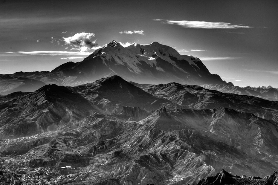 Después de esto no quedaba más nada que hacer, sino que gozar de la tarde perfecta y de una vista única. Toda la Cordillera Real, desde el Illampu hacia el Norte, hasta los picos pocos conocidos del Quimsa Cruz al Sur, se presentaban con sus enormes ventisqueros bañados por el sol tropical, y al Este, kilómetro tras kilómetro, se extendían las selvas vírgenes del alto Amazonas.