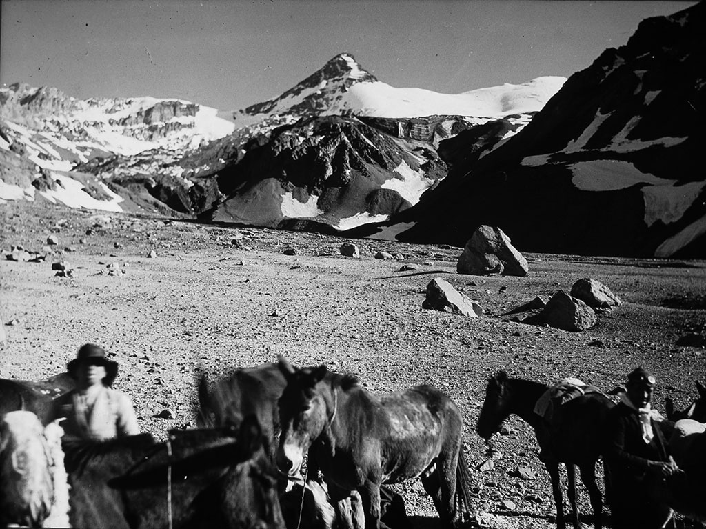 Eran el matrimonio Ramsey, y los señores Edward de la Motte y Bromley, quienes arribaron al lugar con el objetivo de ascender al Aconcagua; contrataron al arriero Lobos, de probada eficiencia, resistente, experimentado en la región montañosa del lugar, podríamos decir un buen baqueano de la zona y del manejo del ganado que acompañaba a los excursionistas; siendo guía hacía poco tiempo de la expedición triunfante al Aconcagua de Ryan y del intento de los mismos a los cerros Tolosa y Almacenes.