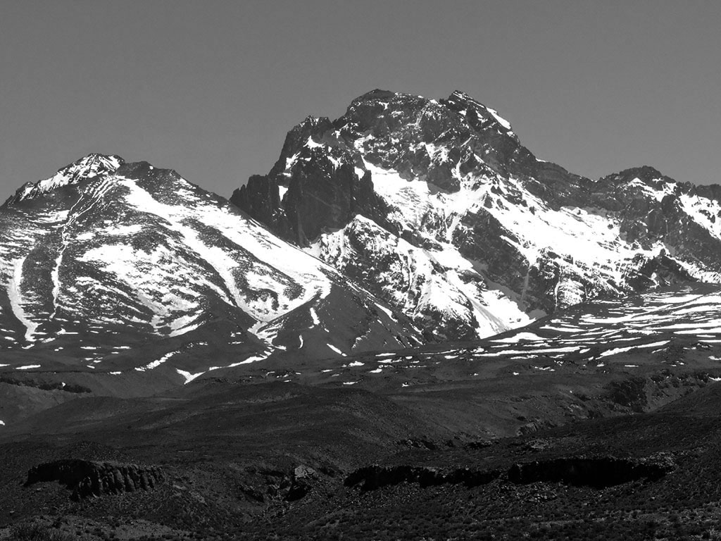 Las torres del Aconcagua, a manera de fortaleza, se alzan más atrás como muros prestos a la defensa.
