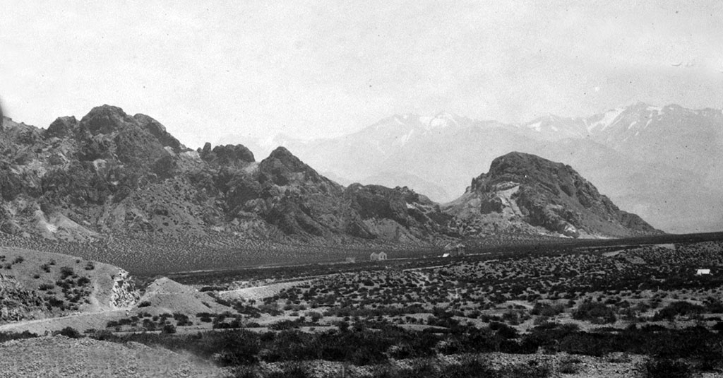 Del Este, El Sosneado, se yergue desde la base en grandes precipicios de roca cubierta de hielo y por sus grandes proporciones domina la vista de la estancia. Ofrece sin embargo un aspecto muy distinto, desde el Oeste donde largas laderas de detrito casi libre de nieve suben hasta la muralla de piedra de 40 metros de altura que guarda la cúspide. Se vio que una gran ascensión por el Este ofrecería grandes dificultades y probablemente ciertos riesgos por las avalanchas en vista de la estación a fines de la primavera, por lo tanto, no se perdió tiempo en recorrer el valle para conocer el Oeste de la montaña.