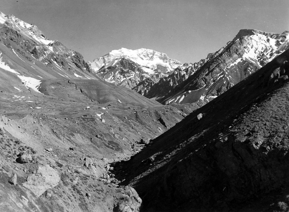 Cuatro horas luchan todavía en aquellos 300 metros de agonía que después jalonaran tantos fracasos. Paso a paso, con exasperante lentitud, van ascendiendo las dos figuras encorvadas por el callejón que desemboca entre el filo de las dos cumbres del Aconcagua.
