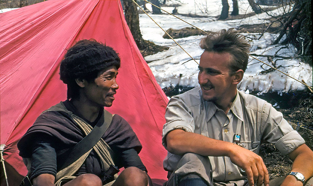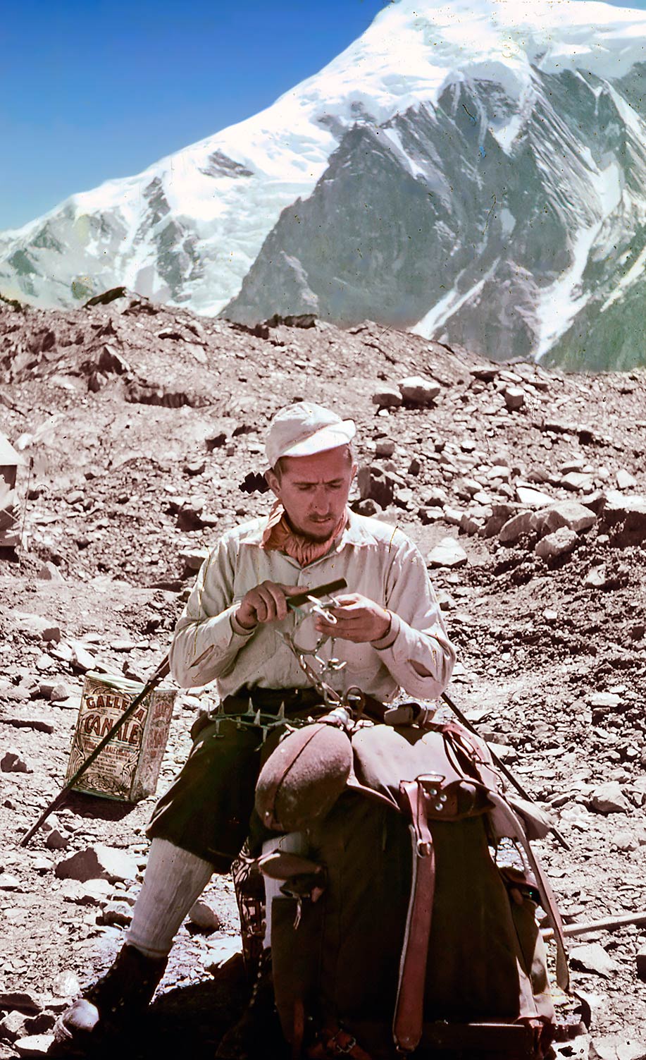 Roberto Busquets, descansando en una arista. Expedición al Himalaya, 1954