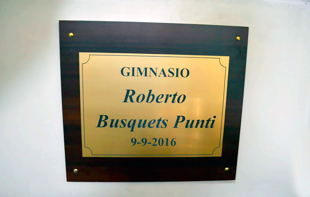 El 9 de septiembre de 2016, se inauguró el gimnasio Roberto Busquets Punti, en la localidad de Yungay, en la Bomba del mismo nombre, en su honor por todo lo que le había entregado a la comunidad.