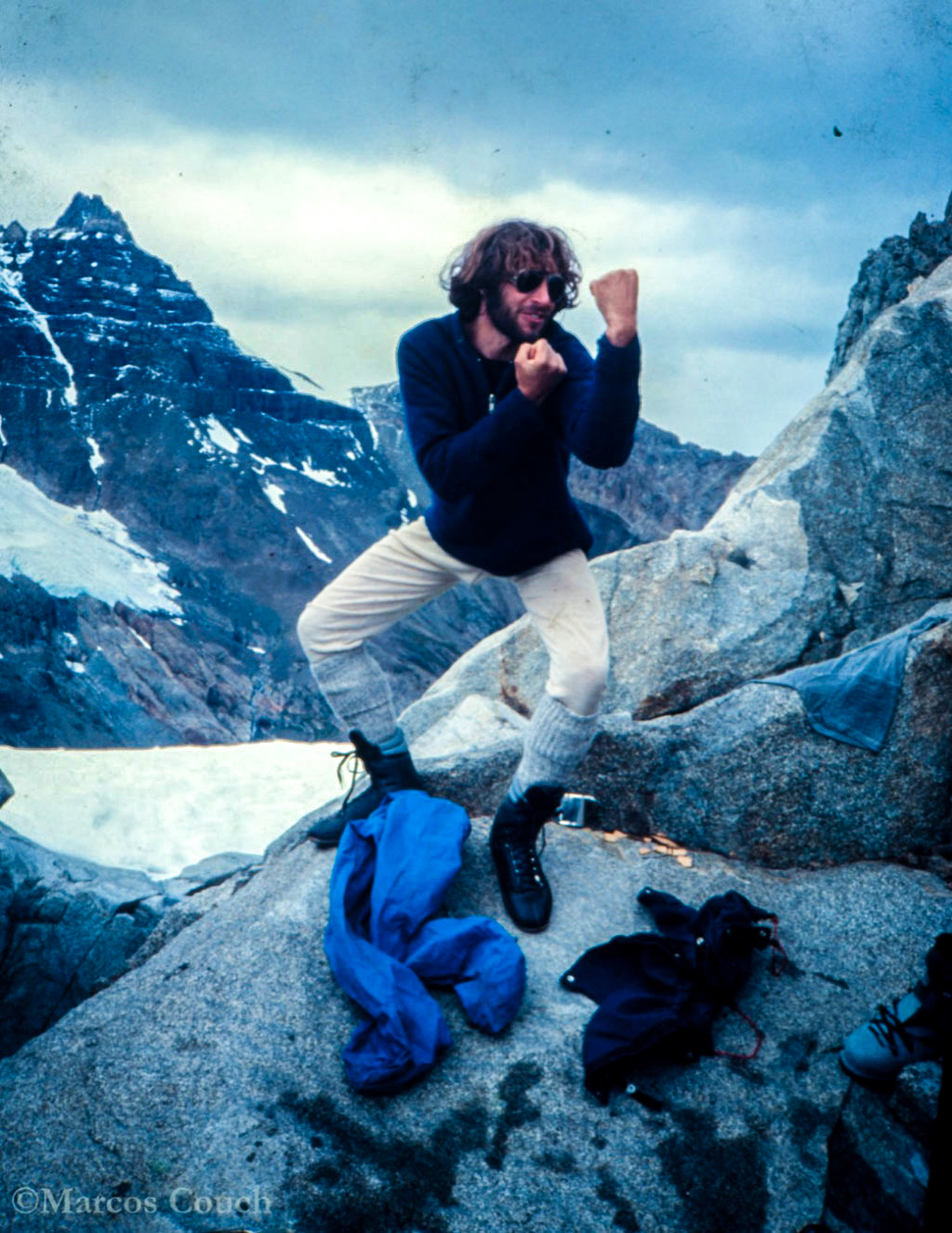 A principios de los 80, a la edad de 25 años, Marcos, Peta, Alberto y Eduardo (ya desaparecidos) llegaron, tras 4 meses de esfuerzos, a la cima de una de las montañas míticas del planeta: el Fitz Roy.