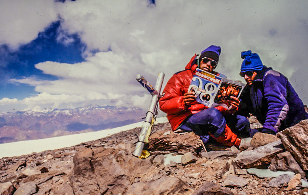 Como prueba, faltaba escalar en altura, por lo que, con Seba, Nico de La Cruz, Chulengo Lamuniere y Eduardo, fuimos al Aconcagua. La meta final era la famosa cara Sur. Hicimos la normal para aclimatar y no quedó tiempo ni energía siquiera para imaginar la cara Sur.