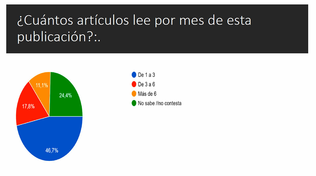 El 70 % de los encuestados considera al C.C.A.M. como importante o muy importante, y responde que lee de 1 a 3 notas mensuales de las publicaciones del C.C.A.M.