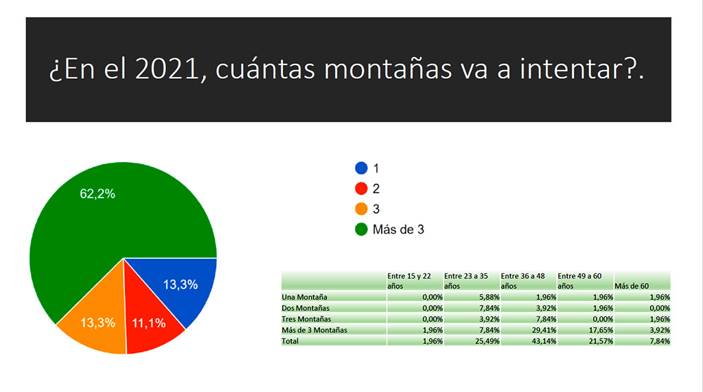 En el 61 % programó para el 2021 ascender a más de tres cumbres.