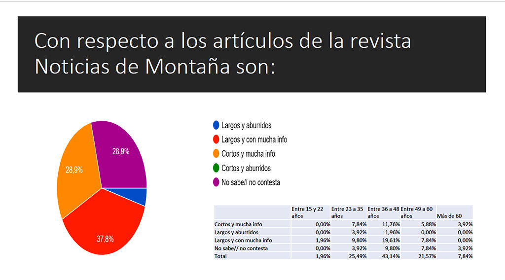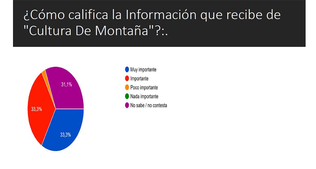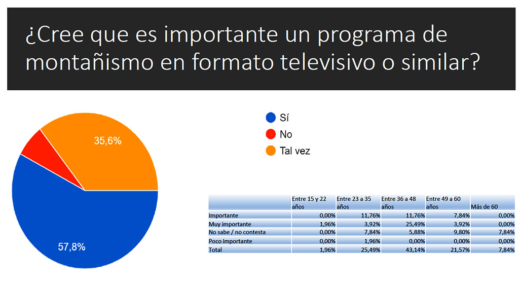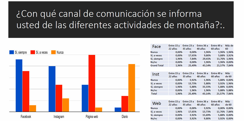 Se aclara que además de la encuesta en sí, el Prof. Roberto Catalá, realizó un testeo directo e individual de los resultados, utilizando sus contactos personales en diferentes grupos de montaña de Argentina y pudo confirmar plenamente los resultados de la encuesta.