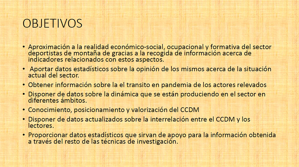 También se buscó averiguar la situación actual del montañismo no profesional y las consecuencias de la pandemia en la actividad.