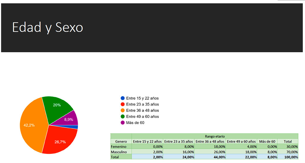 Se pudo saber que el 70 % de las personas que conocían la institución y sus publicaciones pertenece a las franjas etarias de 36 a 48 años y de 23 a 35 años.