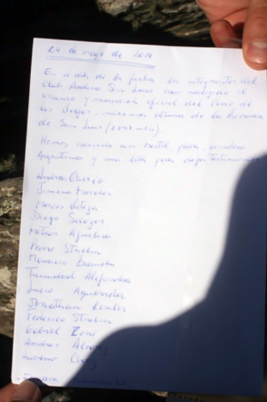 “Era casi un misterio que había llevado a errores a los más avezados montañistas y nos parecía insólito que no se pudiera saber con precisión un punto tan importante como la mayor altura de nuestra provincia de San Luis…”, expresa Pedro Strelin, Presidente del Club Andino San Luis y agrega que “…por eso nos pusimos como uno de los primeros objetivos señalizar correctamente el lugar donde está el techo puntano, el sitio donde la provincia alcanza los 2297 mts…”.
