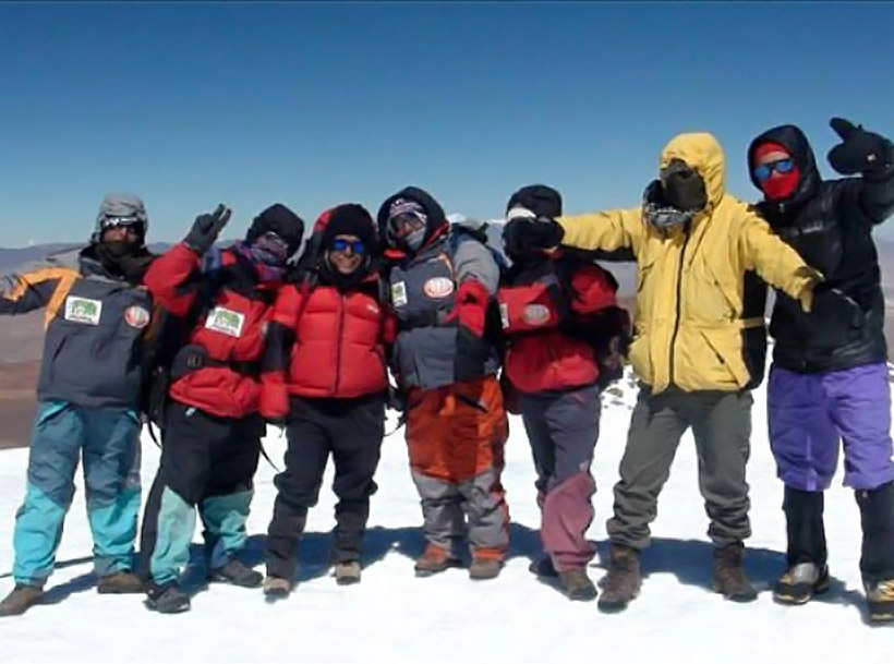 Ana, de 18 años; Mariana, de 15; Paulo, de 16; Yanina, de 18 y Matías, de 17, vivieron la emoción de hacer cumbre en el la sagrada montaña Quewar. Son alumnos de la Escuela de Alta Montaña de san Antonio de los Cobres, fundada en agosto del año pasado, y lograron sus primeros 6.000 metros. Ascendieron con la guía de su instructor Jaime Soriano y el apoyo de los montañistas Mariela del Valle Flores, Alejandro Díaz Patrón y Mercedes López.