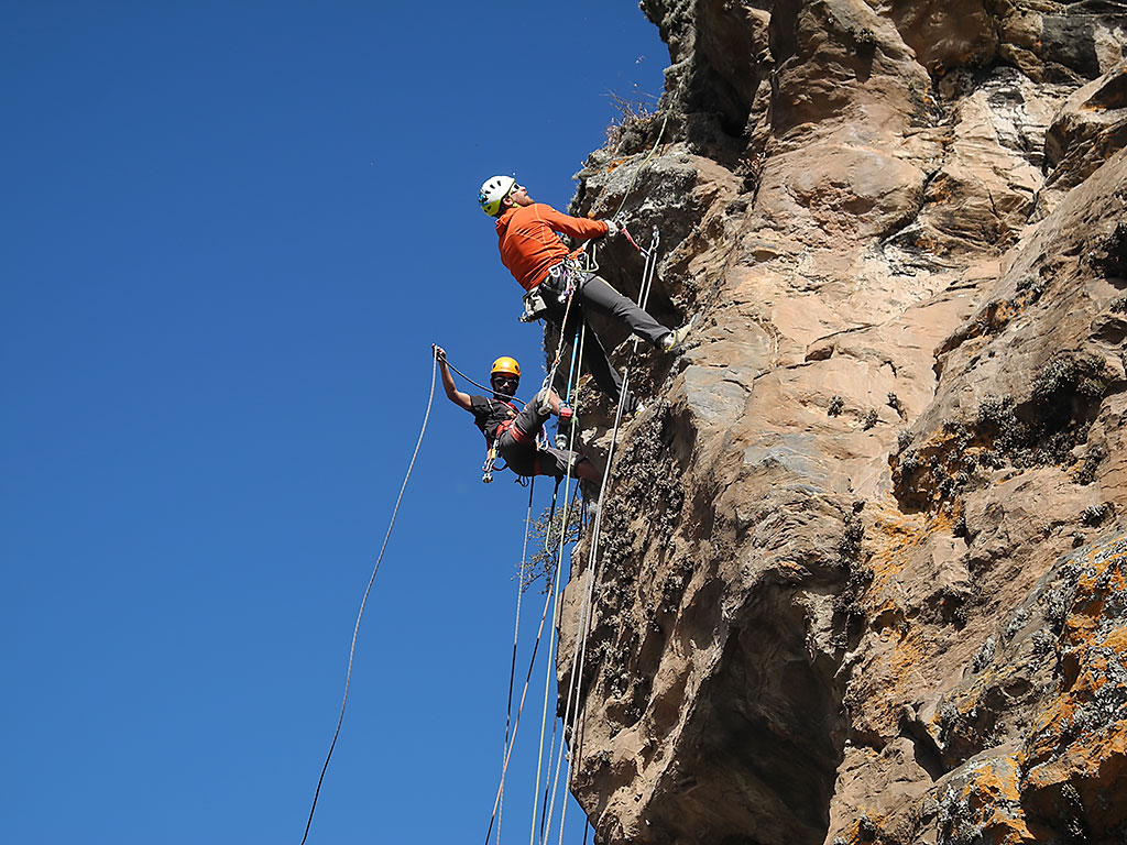 Recomendación: es indispensable el uso del casco en este sector. Debido a que las vías son nuevas hay que estar atentos al desprendimiento de pequeñas rocas. Recomendamos el uso del casco para el escalador y asegurador.
