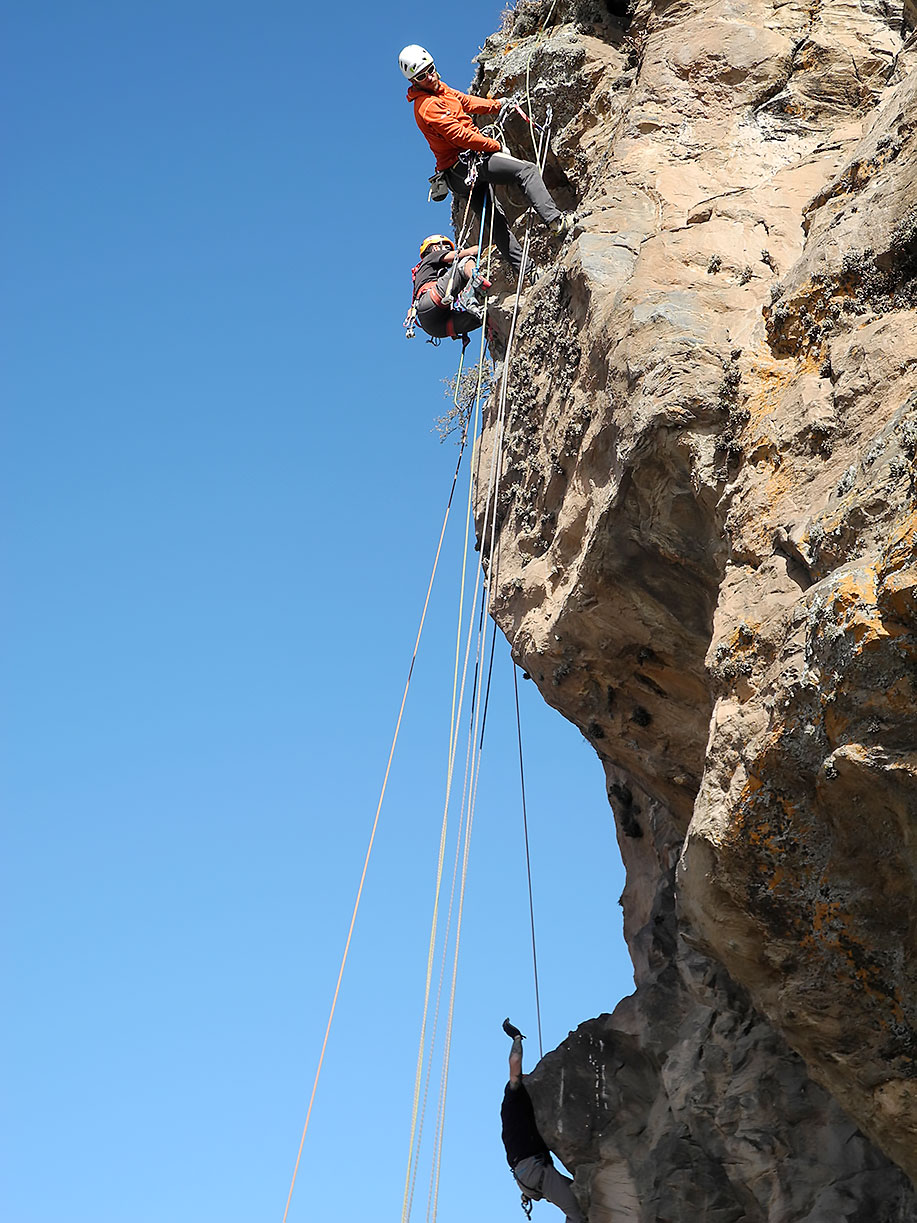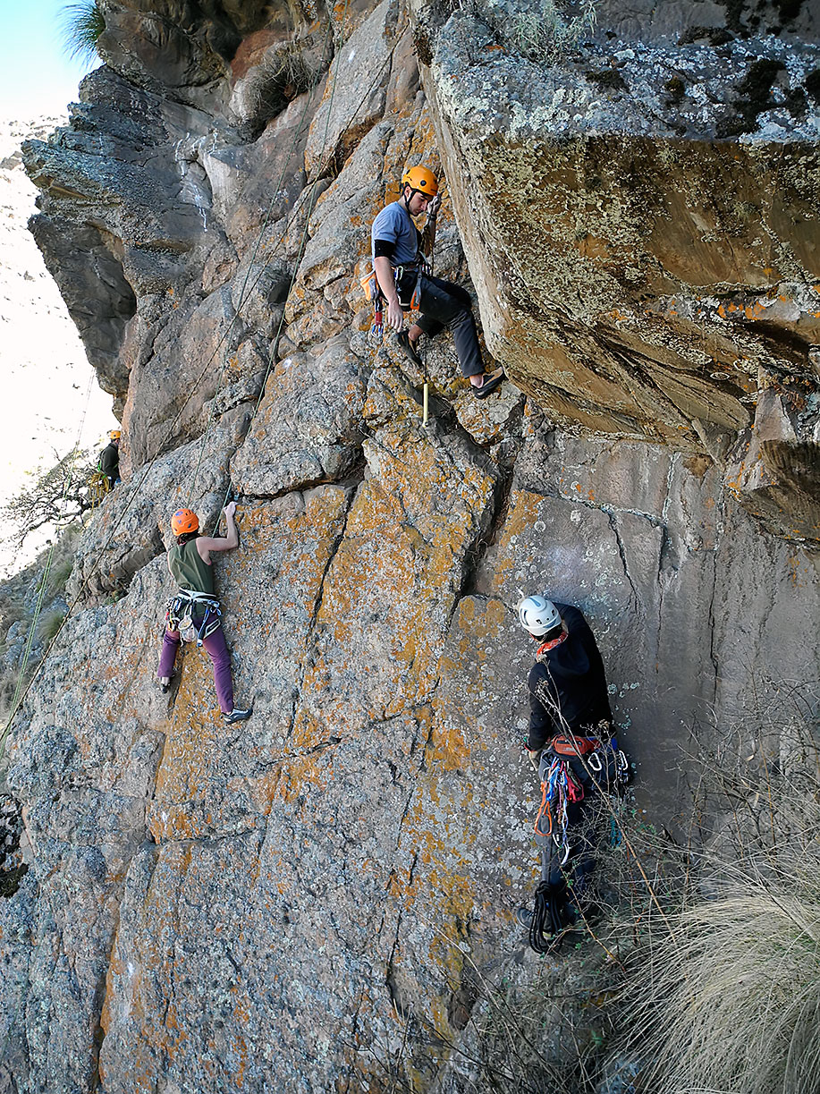 El día miércoles nos dirigimos todos los participantes al sector La Quebrada, donde abrimos itinerarios de dificultad baja, constituyendo así un sector escuela ideal para la iniciación de la práctica a la escalada en roca.