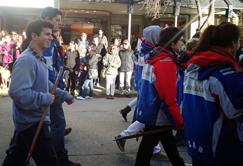 Representantes de la comisión de Auxilio, la Escuela Juvenil de Esquí y Snowboard, la Escuela Juvenil de Montaña y el grupo GEDA, además de autoridades de la institución avanzaron por la calle Mitre para participar de este desfile importante que marca la llegada de la temporada invernal en la ciudad.
