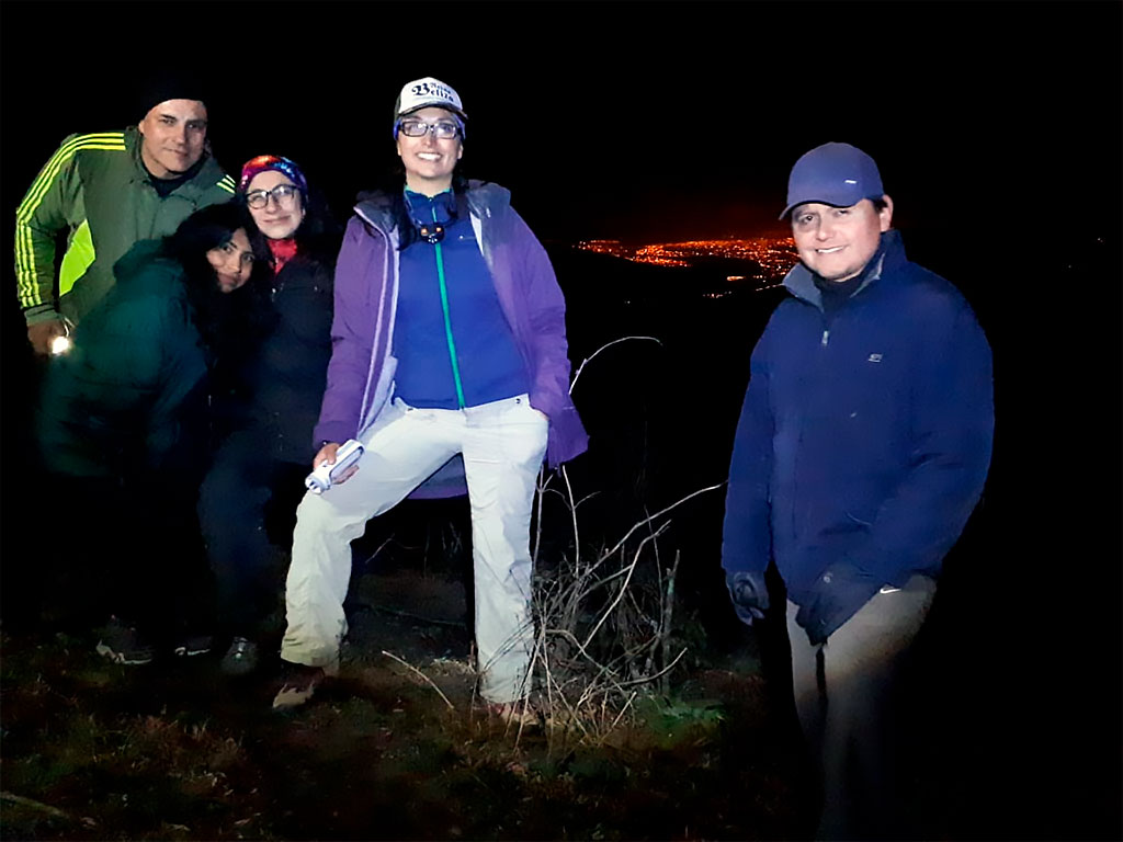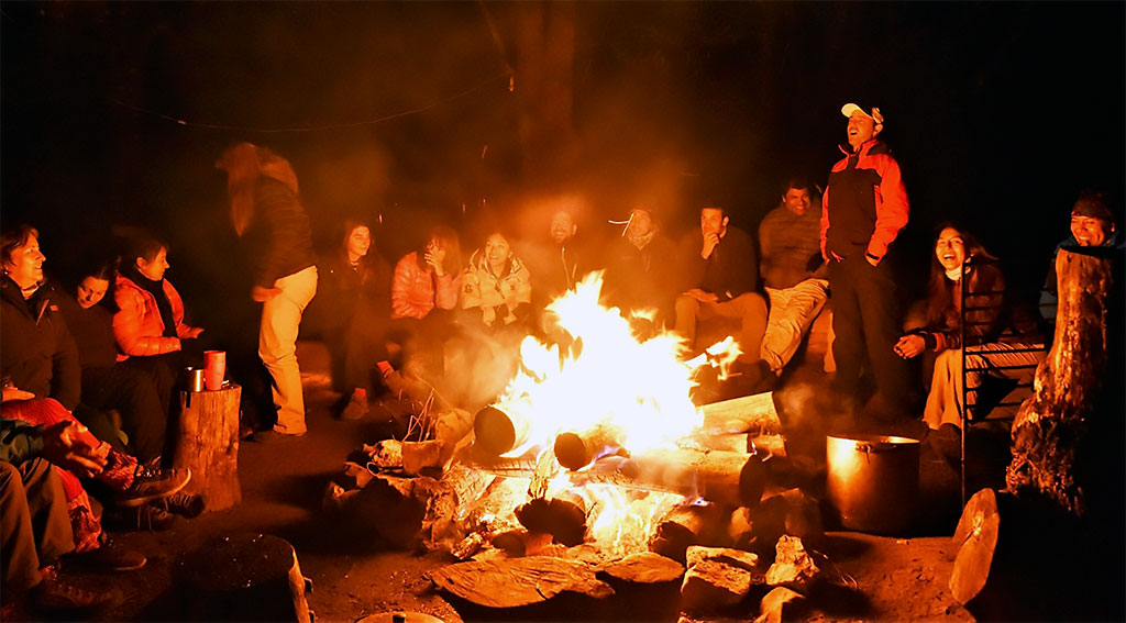 Después de varias horas, llegaron al campamento cansados pero felices por el logro, ya por la tarde, justo para los mates y la fogata porque en Yala la temperatura es más baja que en capital y muy húmedo por lo que es más frío, además de ventoso. Pero aun así, no se desanimaron en compartir entre todos la hazaña realizada. Todo el día estuvo pronta la olla de agua hervida para los mates o un té. Y por la noche, todos alrededor del fuego y las brasas, contando anécdotas, experiencias de montaña e historias mientras se hacía la cena: hamburguesas a la parrilla y lo que cada uno había llevado. Una guitarra despertó la algarabía de los andinistas, que cantaron hasta altas horas de la noche. Otro grupo, aprovechó la oscuridad para colocarse abrigo y las linternas frontales para caminar por los senderos de lugar. El frío no les impidió disfrutar del cielo estrellado, la luna y la fantástica vista del valle y la ciudad a lo lejos con sus luces encendidas.