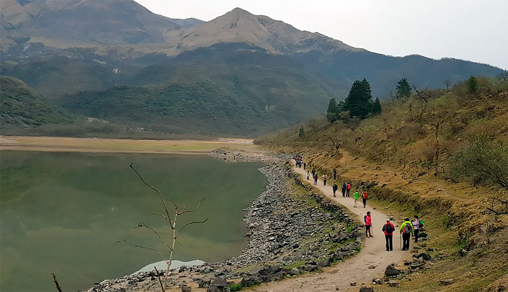 Mientras algunos trabajaban en la ornamentación del lugar y acomodaban las cosas para recibirlos de la mejor manera y se sientan cómodos, otros recepcionaron felizmente a la Agrupación de Montaña Calchaquí (Catamarca), Club Andino San Lorenzo (Salta), Club Amigos de la Montaña CAM (Salta), y Asociación Argentina de Montaña Aam (Tucumán), además de socios de Jujuy Andino Club de Montaña que se hicieron presente. Fueron más de 60 personas en vehículos, quienes establecieron cómodo campamento por todo el predio del refugio. Prontamente prepararon sus mochilas de ataque para emprender la caminata prevista en el Programa del Encuentro. Ya listos, los grupos se dirigieron hasta la zona de la hostería en la Laguna Rodeo, a pocos metros del refugio siguiendo el camino principal, desde donde se inició la marcha. Pero antes, las infaltables fotos en conjunto.