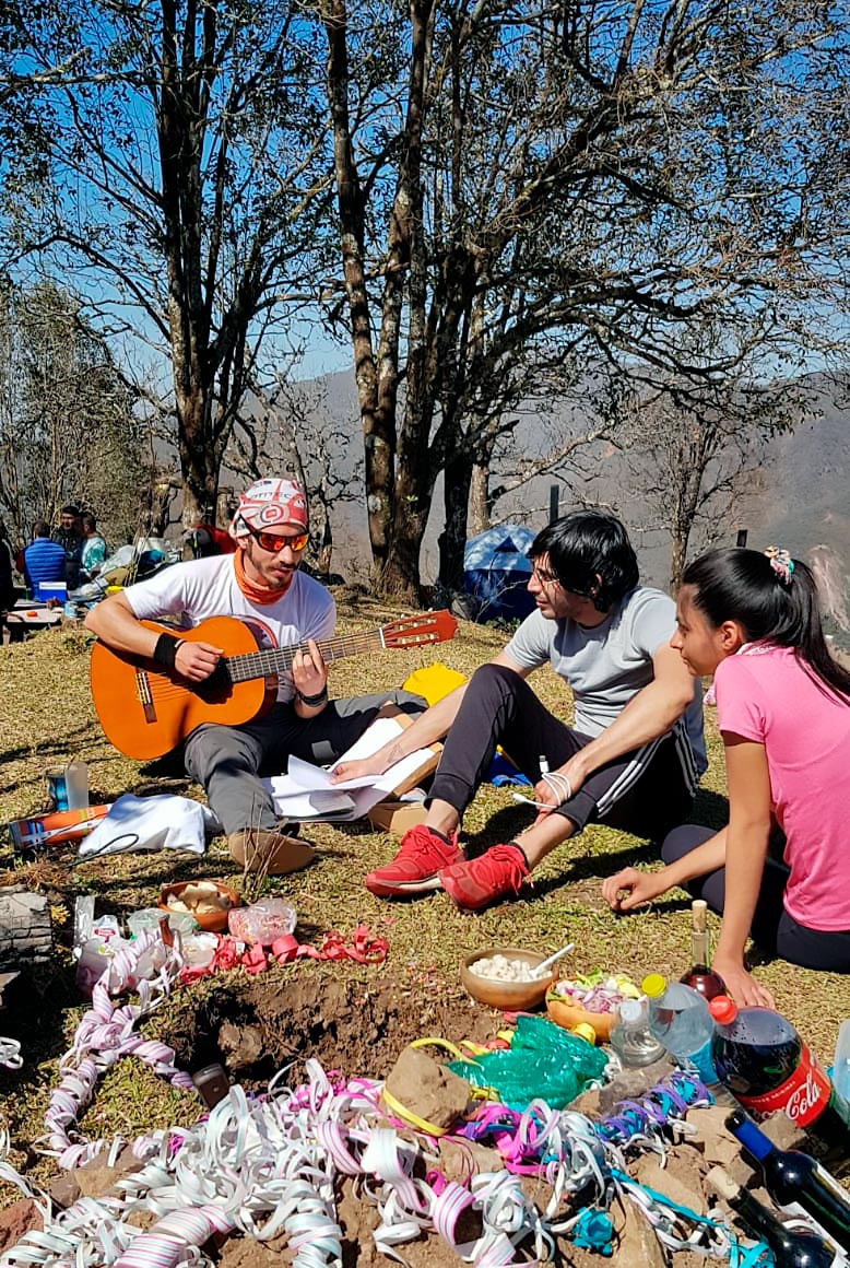 Mientras regresaban del trekking, socios de distintos Clubes comenzaron a cavar un pozo para honrar a la Pachamama, tradición ancestral que se realiza cada 1º de agosto, pero este homenaje se generaliza durante todo el mes. Otros montañistas preparaban las ofrendas, que eran abundantes.