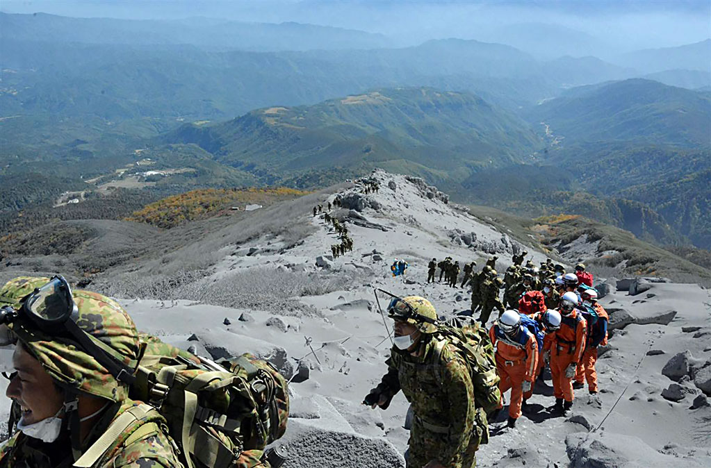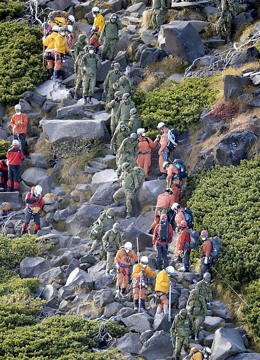 Los equipos de rescate comenzaron la búsqueda de decenas de alpinistas que fueron sorprendidos por la repentina erupción del monte Ontake.