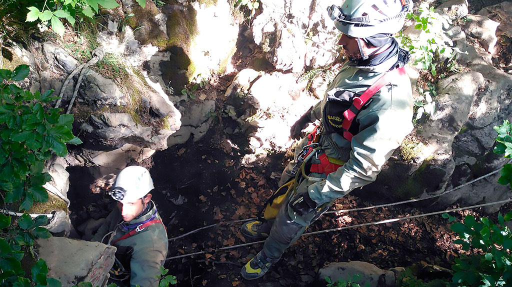 En los trabajos de auxilio han participado más de 30 agentes, que han tenido que llevar a cabo pequeñas voladuras para acceder hasta el hombre de 37 años que se encontraba atrapado a 200 metros en la sima de Larra.
