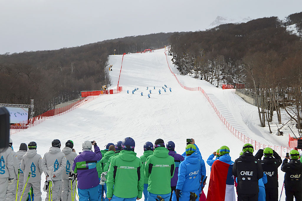 Fueron días de fiesta en Castor. Aunque los talleres y carreras se circunscribieron a una pista específica (la negra Halcón Peregrino, preparada para la ocasión) sin alterar el resto, el cerro completo se pobló de camperas con colores, escudos y pins reconocibles. Todo un show extra para los turistas que habían elegido este centro para una escapada de esquí más: al subir por la tesilla Del Parque podían ver a los norteamericanos volar en el snowpark, al tomar la cuádruple de Las Piedras pasaban sobre la pista negra donde suizos y austríacos tomaban velocidad de miedo y, al llegar al característico callejón rocoso que conduce a La Brecha, se cruzaban con grupos mixtos recibiendo las últimas instrucciones en inglés antes de desfilar hacia abajo. Mientras los italianos almorzaban en el restaurante Terrazas del Castor, los eslovenos deslumbraban con su coreografía y vestuario temáticos a lo James Bond, los coreanos apuraban un último cigarrillo antes de treparse al medio Del Filo y, bien al este, los finlandeses se tiraban de cabeza por Albatros.