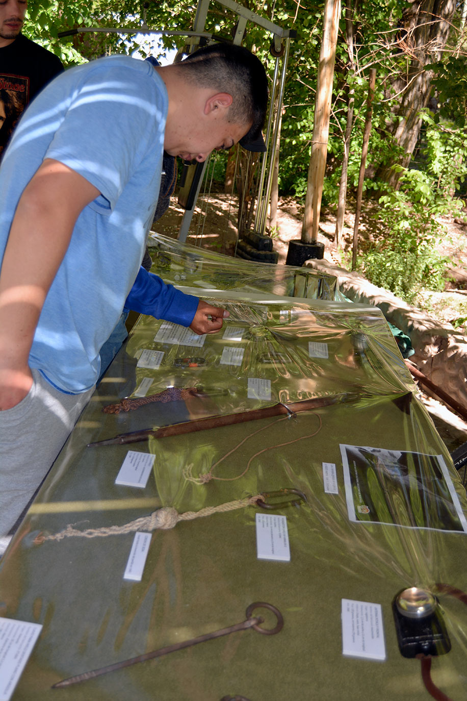 Seleccionando objetos del Museo del Montañismo Andino del CCAM para la muestra en el IV encuentro de montañismo en Barreal, San Juan. Foto: Natalia Fernández Juárez