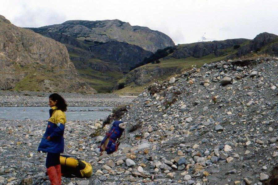 El campamento base se instalaría en Piedra del Fraile, en aquel año todavía no estaba el puente, tampoco existía el pueblo El Chaltén. Llegar hasta dicho campamento fue largo y pesado, uno de los obstáculos era cruzar el río, atravesarlo metiéndonos en él. El río Fitz Roy trae aguas de deshielo por lo tanto muy fría, helada. Debíamos realizar el cruce con un calzado y medias especialmente portadas para la ocasión pues cruzarlo descalzos se hace imposible. El frío del agua y el dolor de las piedras filosas sería demasiado. El río venía muy crecido y María Inés mide 1,53m y en aquel entonces pesaba sólo 45 kilos, el agua la arrastró y uno de nuestros compañeros se volvió a meter a la corriente para rescatarla, hermoso equipo. Hermoso susto.