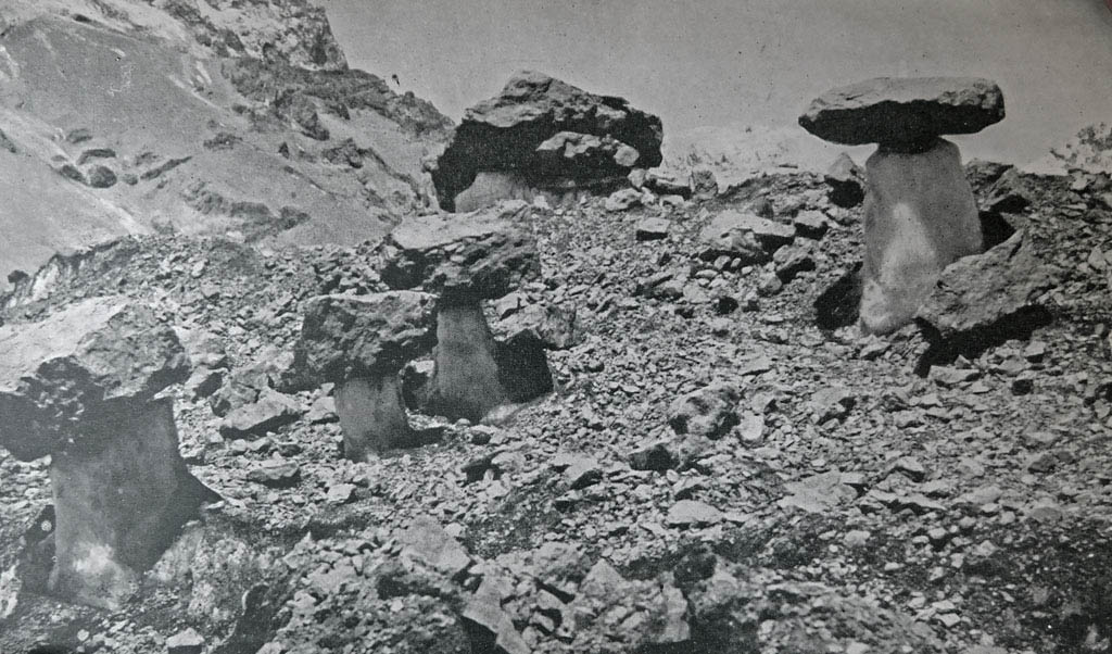 Hicimos nuestro último esfuerzo en este terreno. Tuvimos que trepar por bloques de roca que se levantaban como una pirámide.