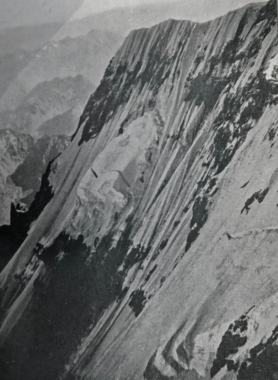De esta forma se devuelve nuestro compañero a las 12:30 a unos 6.800 metros. Fueron una despedida y un desearse suerte extraños. ¿No era Karl un triunfador? Con su renuncia a la cumbre Norte, que nosotros habríamos alcanzado juntos, posibilitó el primer ascenso de la cumbre Sur por alemanes… ¡A Lothar este suceso lo conmovió tan profundamente que le cayeron unas lágrimas! [Nota: se refiere a Karl Schade, tercer miembro de la expedición].
