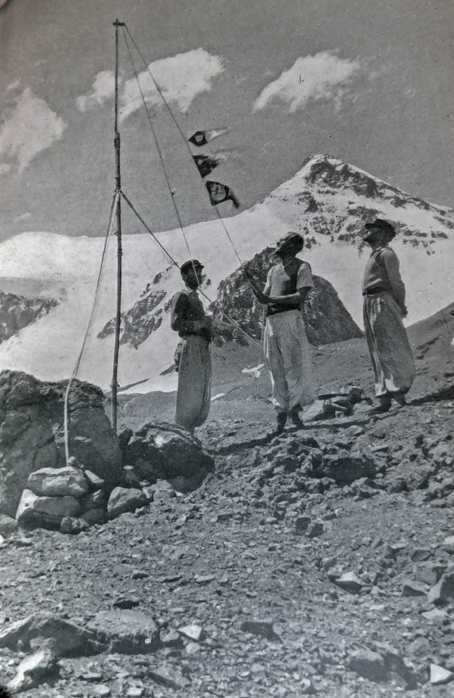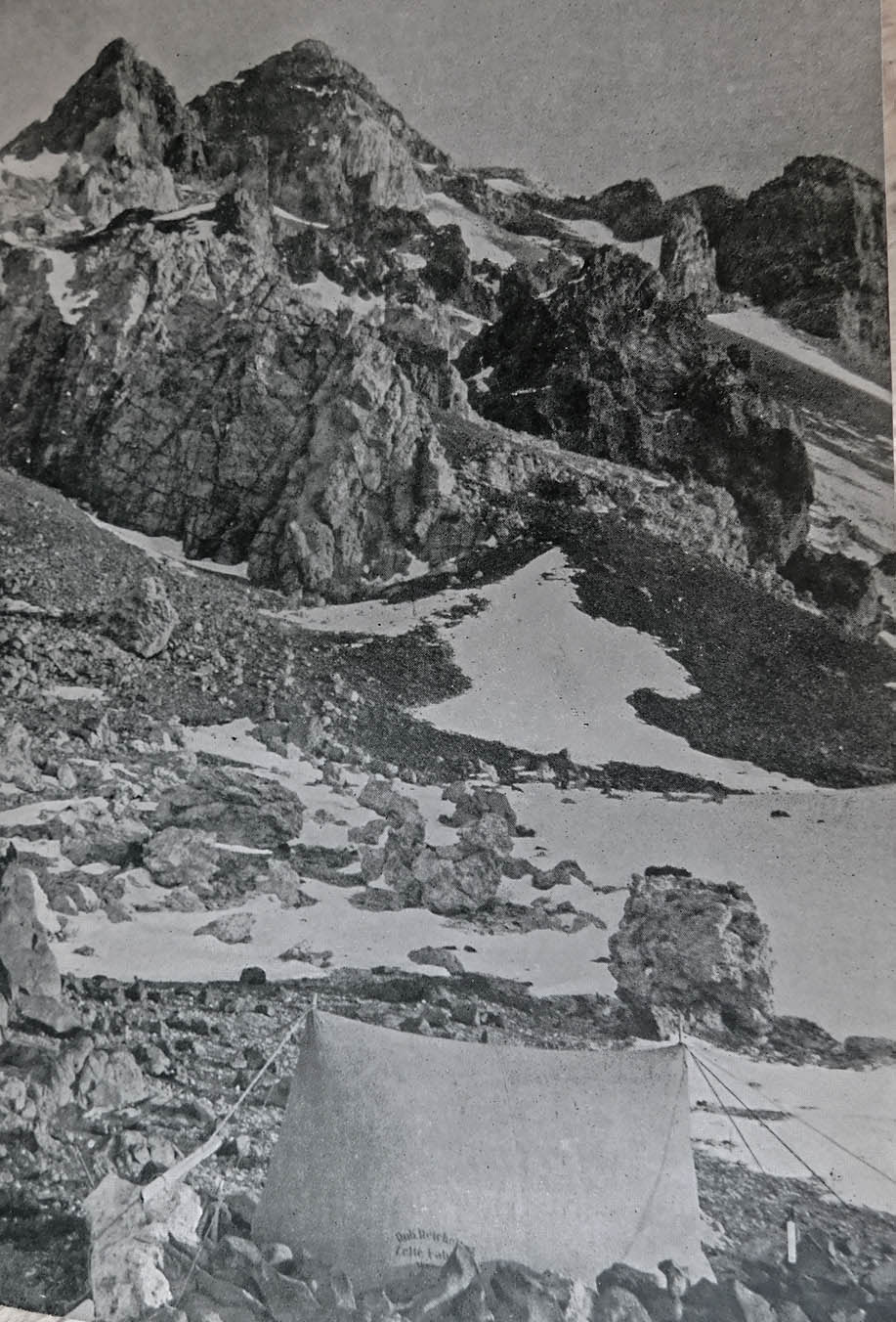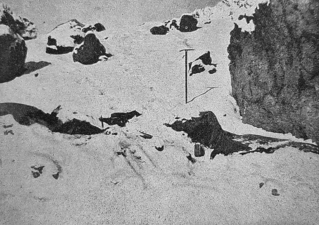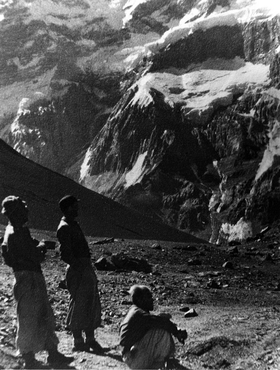 Las huellas son conocidas. En el campamento a 6600 m, donde falleció Schiller[ Nota: Walther Schiller, muerto el 17-2-1944, a los 6.200 metros en el Aconcagua], encontramos una gran lata con un magnífico jamón (como más tarde pudimos comprobar).